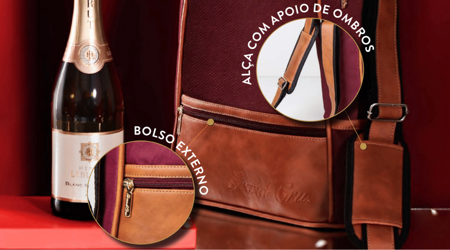 Qualquer que seja a composição dos vinhos que você escolha, a bolsa sempre agragará uma percepção de valor muito relevante no kit dada a sua funcionalidade e versatilidade.