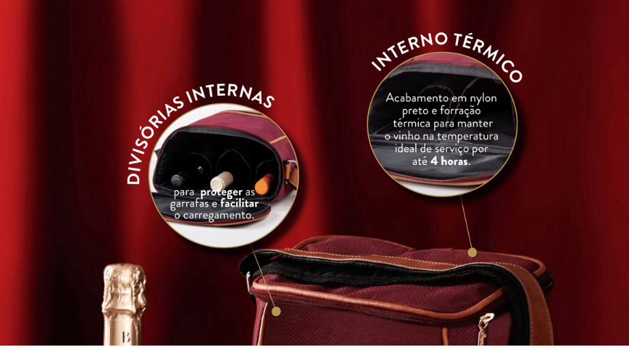 Vinhos sofisticados em bolsas térmicas que são parte relevante do presente